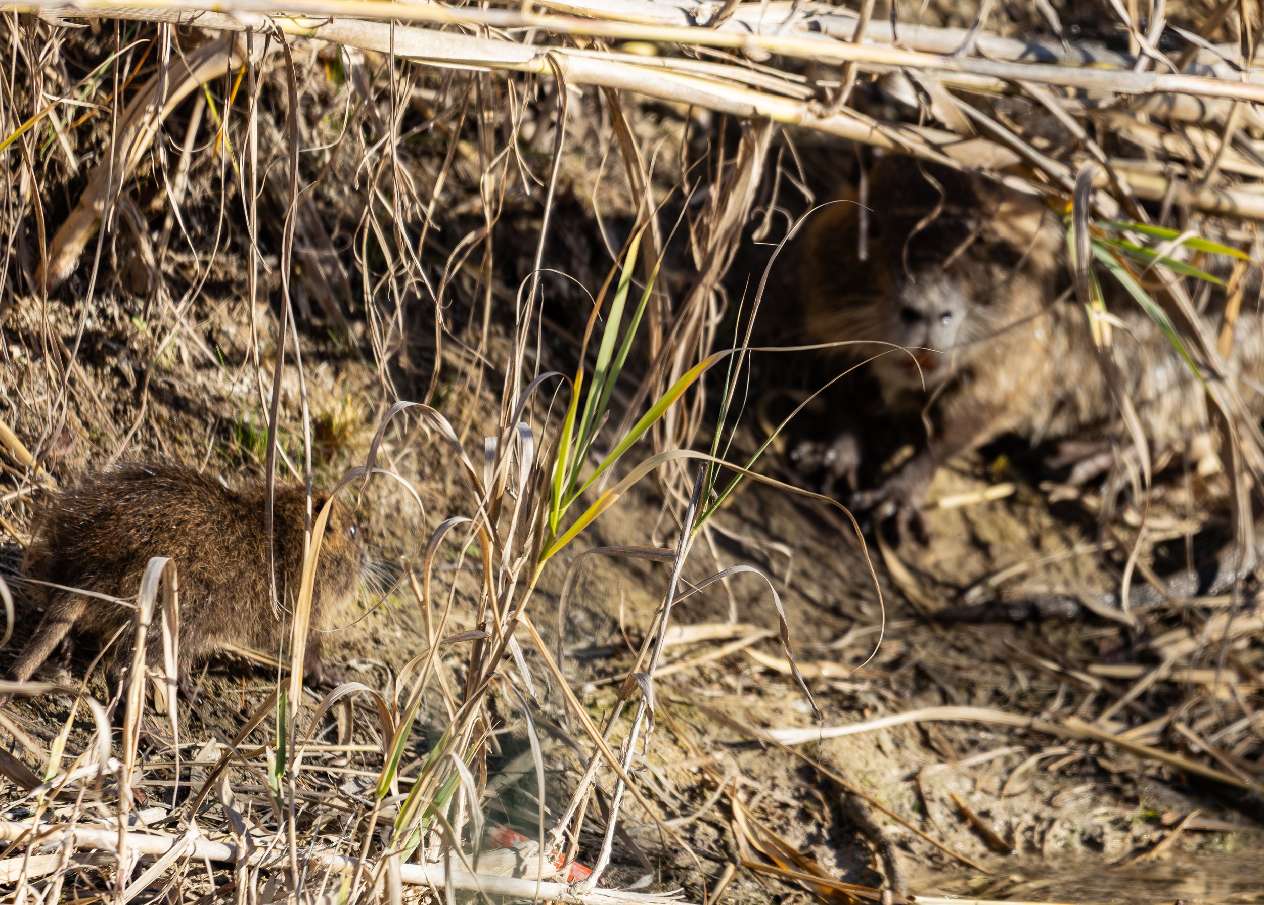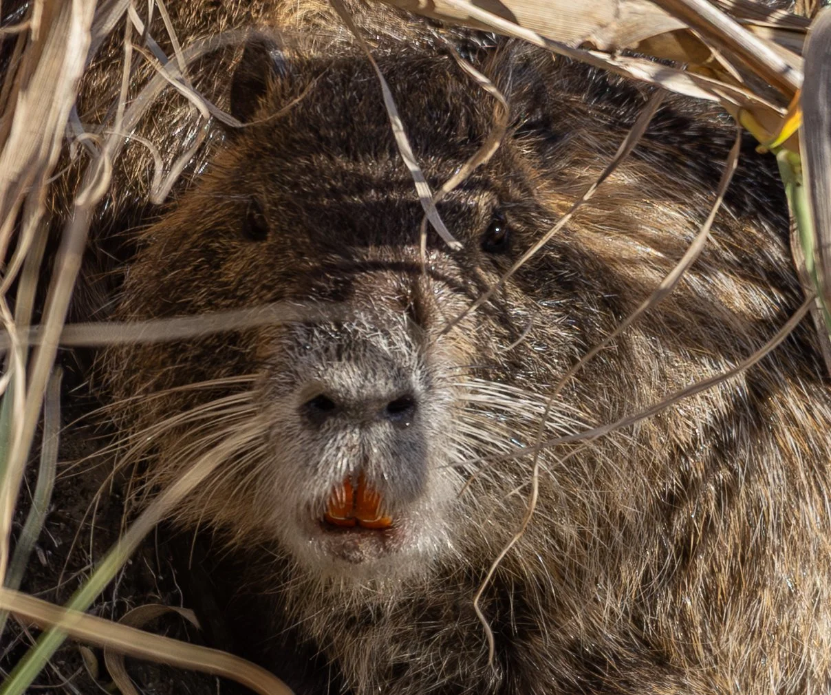 If you’ve ever seen a nutria, they have the big square teeth and—a little startling—they’re a pretty bright orange. So I’m thinking, “Is this another beaver?” and taking photos as quickly as I can. For my photog friends, I shoot with a Canon EOS R6 Mark II mirrorless and my favorite lens, a Sigma telephoto 150-600 mm F/5-6.3 DG Ø95.